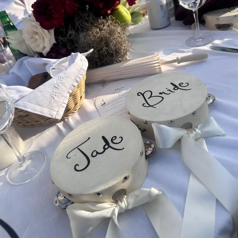 Wer seine Tischkarten gerne mal anders gestalten möchte, könnten diese personalisierten Tamburine gefallen. Die Tamburine können an jeden Gast angepasst werden.