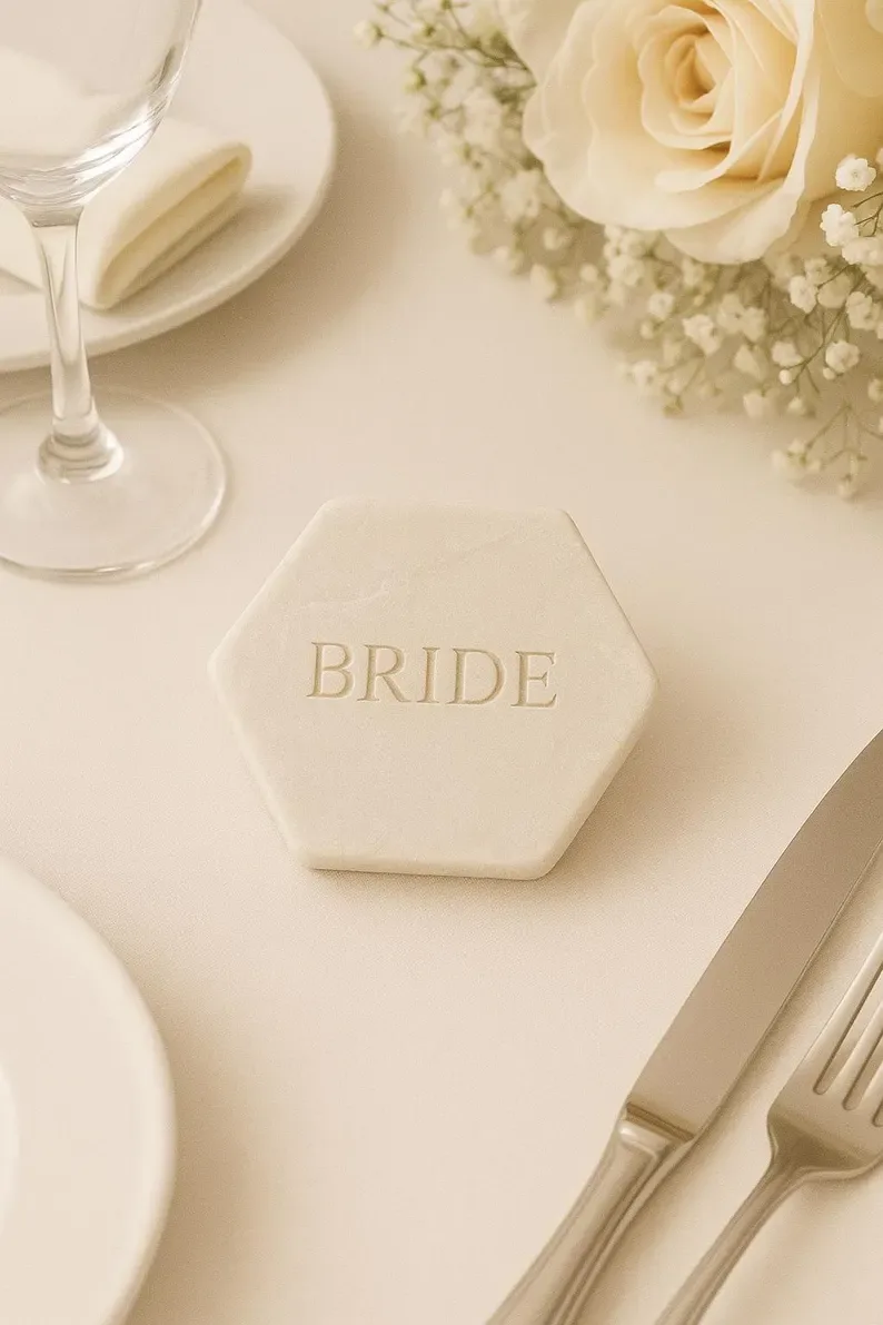 Für eine minimalistische oder moderne Hochzeit sind diese Tischkarten aus Marmor eine ausgefallene und zugleich elegante Lösung, um euren Gästen ihre Plätze zuzuweisen.